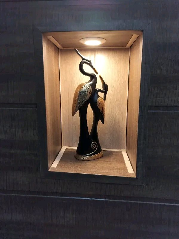 Design: Two intricately sculpted cranes with gold-detailed wings and beaks, symbolizing harmony and elegance