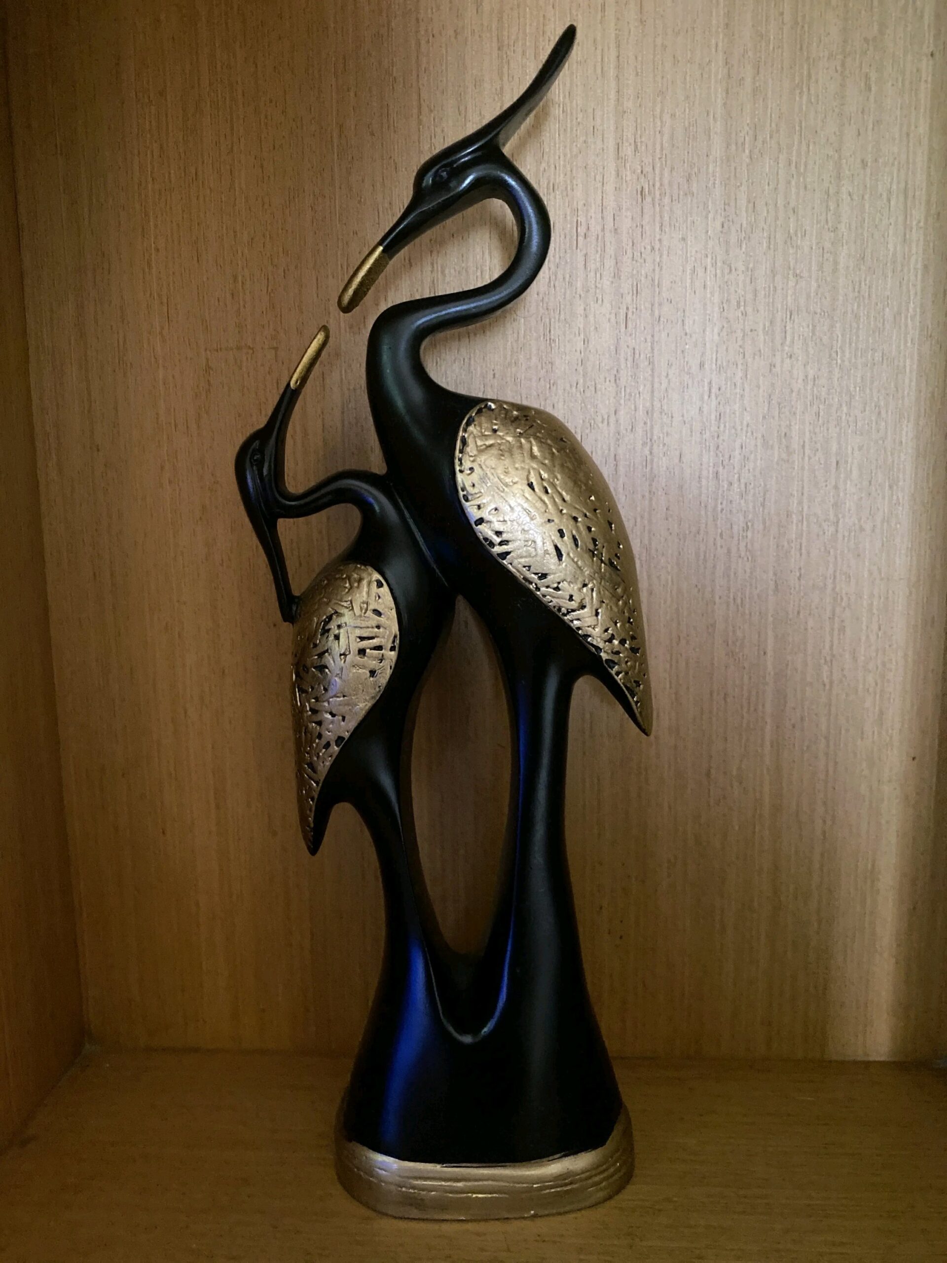 Be the first to review “Elegant Black & Gold Crane Couple Statue – 36 cm”
