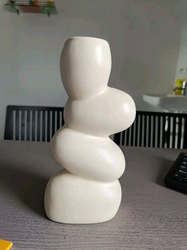 Enhance your home decor with this uniquely designed 9-inch abstract ceramic vase, featuring a smooth, wavy stacked-stone shape that adds a touch of modern sophistication.