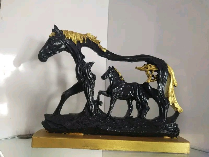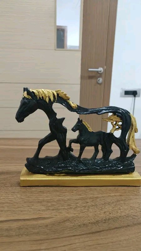 Enhance your home decor with this Elegant Horse Figurine Showpiece, a beautifully crafted decorative item symbolizing strength, freedom, and grace. The intricate detailing and contrasting gold-black finish make it a stunning centerpiece for your living room, office, or study.