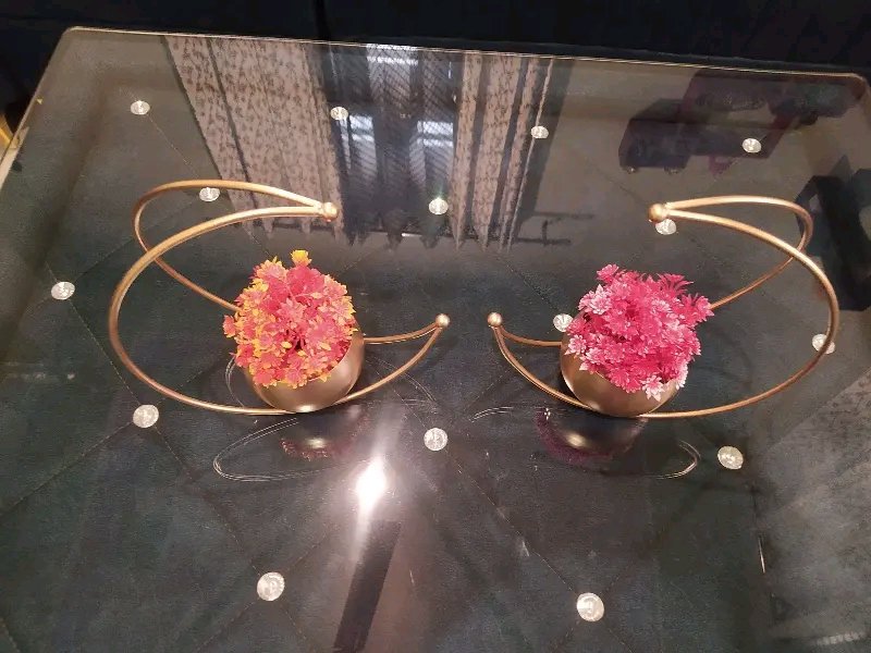 Enhance your home decor with these elegant crescent-shaped metal vases. Featuring a sleek gold finish and a contemporary curved design, these vases bring a modern and artistic touch to any space. The round, bowl-like holders are perfect for displaying artificial flowers, dried arrangements, or decorative elements. Their unique design makes them an eye-catching centerpiece for living rooms, offices, or event decorations.