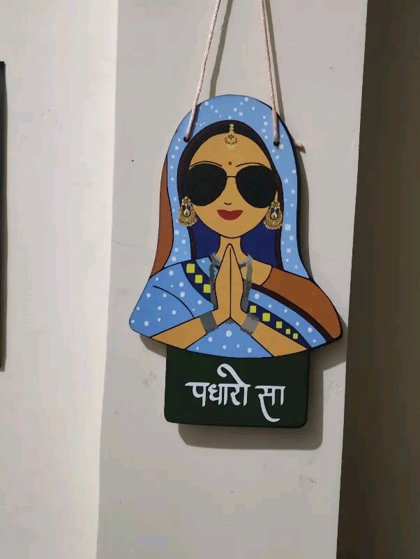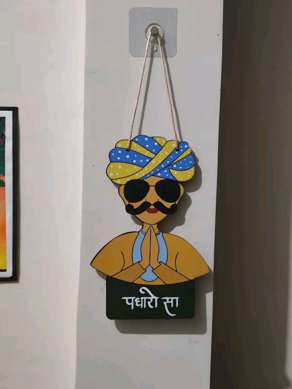 Add a touch of traditional Rajasthani charm to your home with this beautifully crafted “Padharo Sa” welcome hanging. Featuring a vibrant depiction of a Rajasthani man and woman in traditional attire with folded hands, this décor piece extends a warm and stylish welcome to your guests.