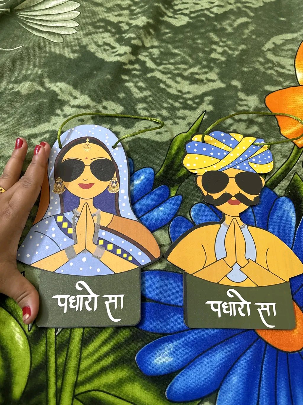 - 2 pieces of “Padharo Sa” welcome hanging décor (as per selection)
